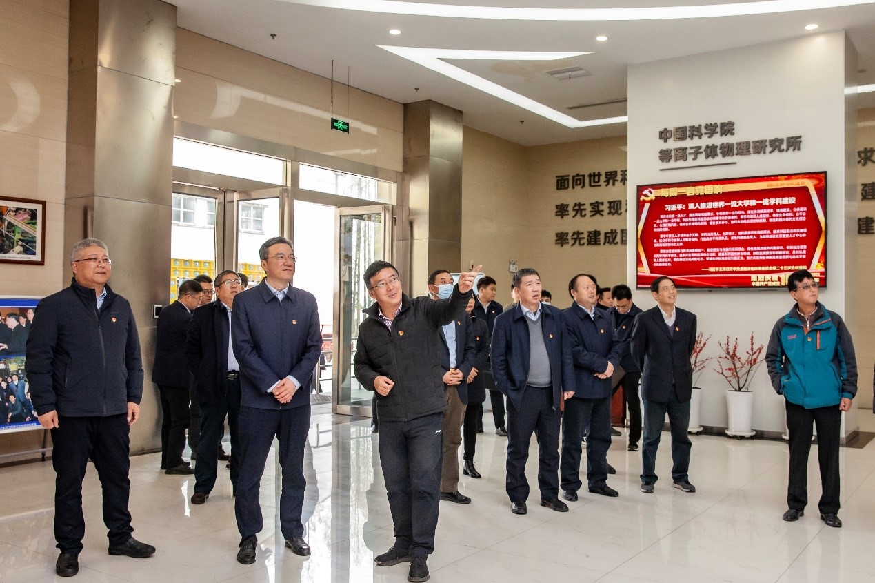 12月23日,国家电网合肥供电公司党委理论学习中心组来等离子体所开展现场学习,合肥供电公司党委书记杨春波、公司总经理胡晓非携供电公司党委委员及供电公司各部门主要负责人参观了EAST主机大厅和控制大厅、聚变堆主机关键系统综合研究设施,等离子体所党委书记吴新潮热情接待来宾一行。